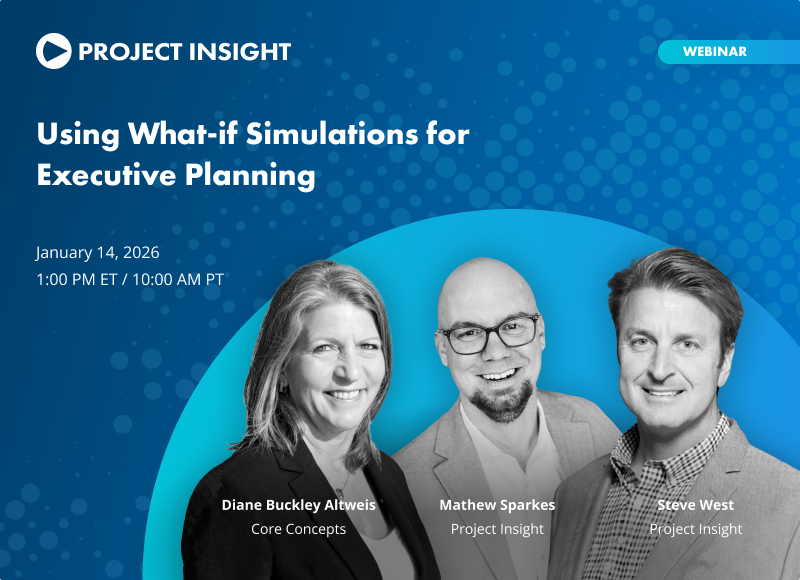 In this PDU-eligible webinar, you will learn how project managers use what-if portfolio simulations to model realistic scenarios, understand portfolio-level impacts, and clearly communicate tradeoffs to senior leadership.